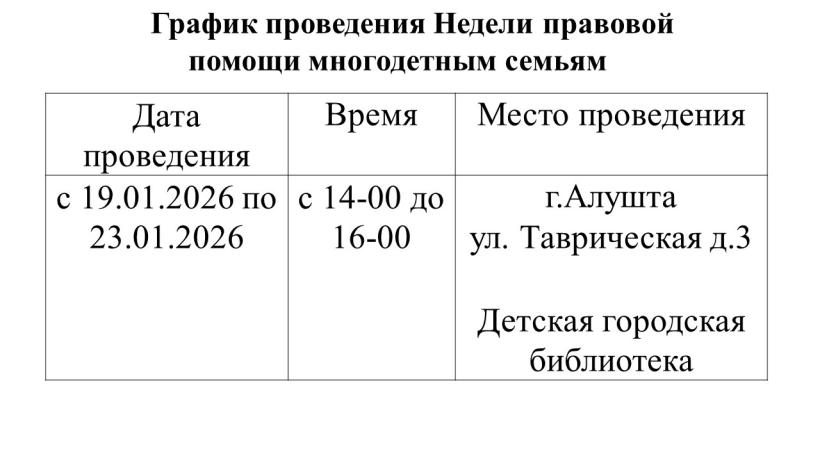 График проведения Недели правовой помощи многодетным семьям