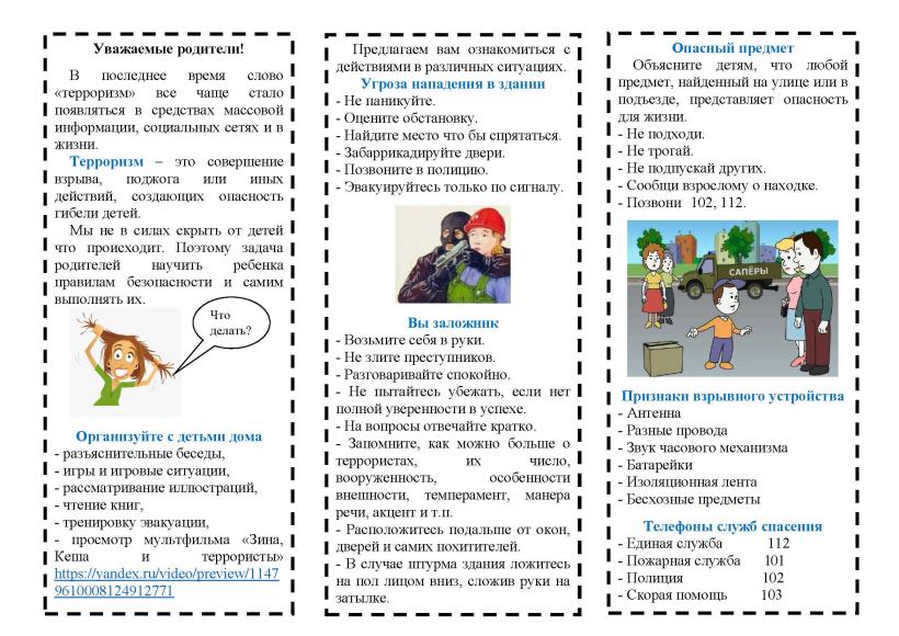 Памятки по действиям родителей (законных представителей) и обучающихся при обнаружении бесхозных предметов